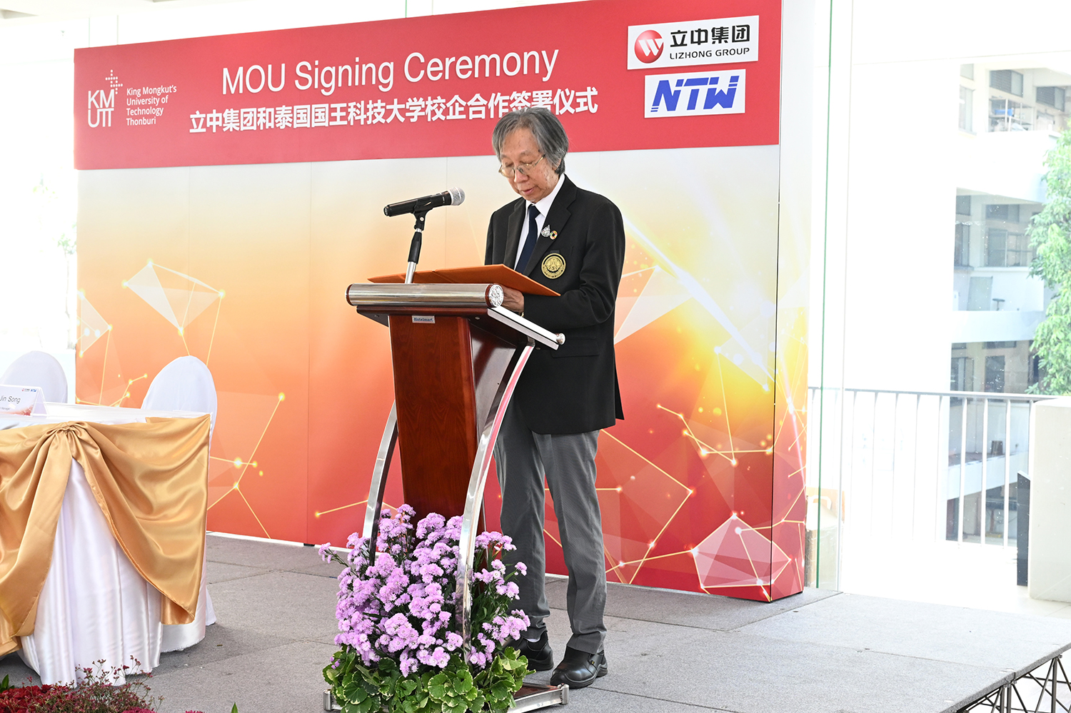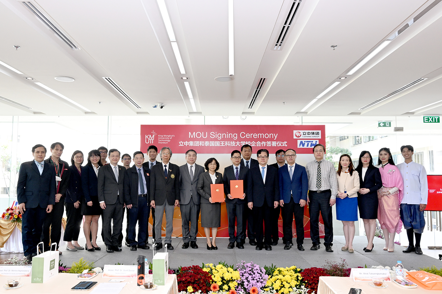 2023年12月14日上午10点,云顶国际集团与泰国国王科技大学(简称KMUTT)在该大学举行“技术创新研究”校企合作项目签约仪式,云顶国际集团创始人、管理委员会主席臧立根,KMUTT校长张乐贤博士分別在仪式上致辞。泰国投资促进委员会(BOI)副秘书长威叻·塔沙致辞对双方强强合作表示祝贺,希望双方合作能为泰国培养优秀人才和泰国社会经济发展做出贡献。